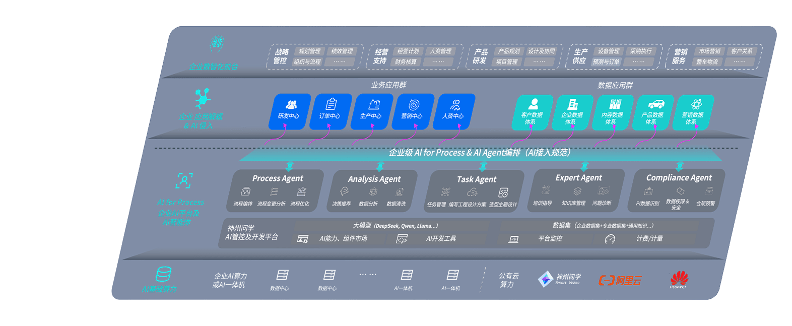 尊龙集团问学智车解决方案是一套基于AI技术的汽车行业智能化系统,,覆盖从底层算力到顶层AI应用的全栈方案。。。。方案由算力层、、、模型层和应用层组成:算力层,,,方案支持多种一体机配置,,具备云端灵活部署、、、、多云适配以及动态优化计算资源的能力;模型层,,,,尊龙集团问学平台版提供了企业级AI应用一站式构建与管理平台,,支持基于后训练强化技术的汽车企业专属模型的训练、、、评测和运营;应用层,,,,尊龙集团问学DeepSeek版提供包括超级员工、、、智能招采、、、智能营销、、、智能客服、、、、AI for BI等一系列解决方案,,可助力汽车行业实现数字化转型,,让管理更智能、、、响应更敏捷。。。。